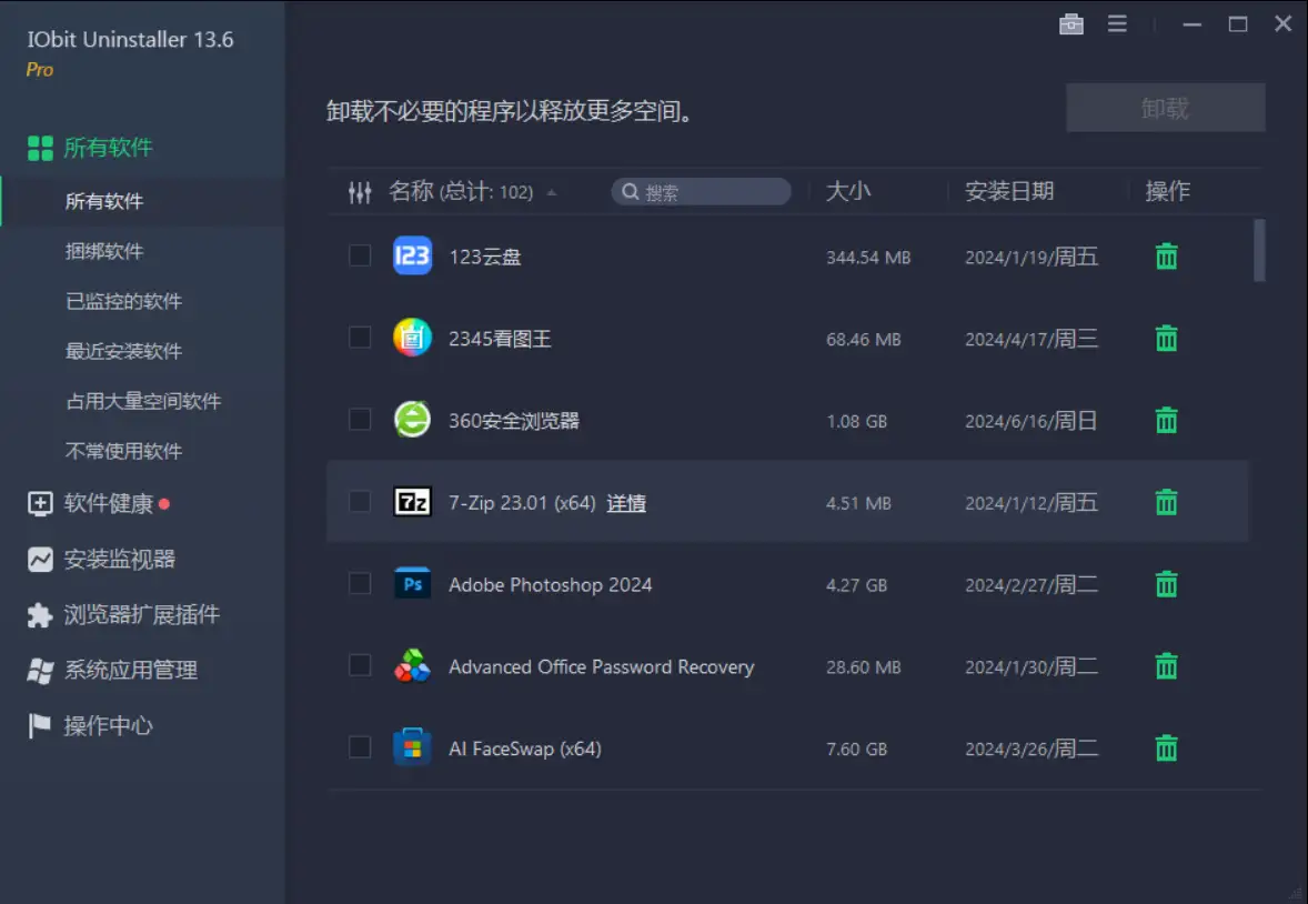 IObit Uninstaller Pro是一款专业的软件卸载工具,采用绿色免安装设计,无需激活即可使用,能够深度清理软件残留,优化系统性能。