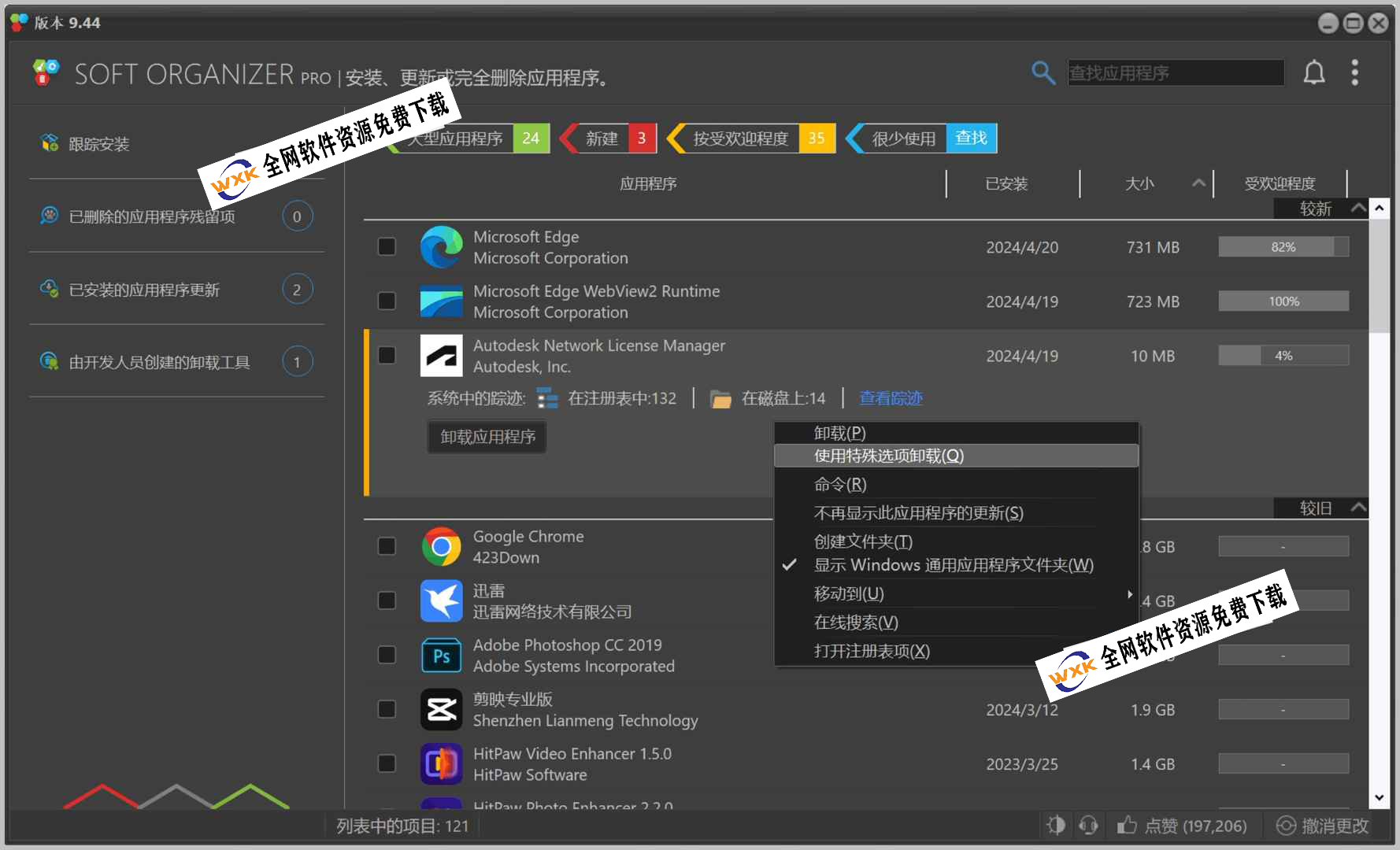 - 完整的安装与卸载管理:Soft Organizer 不仅帮助用户完全安装应用程序,还彻底移除卸载软件时遗留的文件和注册表项。