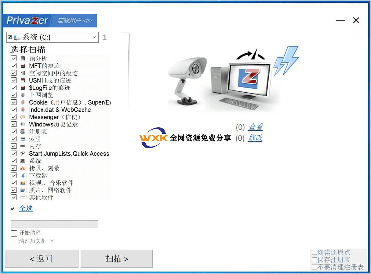 软件支持多种存储设备的痕迹清理,包括计算机硬盘、内置存储器、外置存储器、U盘、iPod、MP3播放器、SD记忆卡、网络存储设备和NAS系统。无论是本地存储还是网络共享文件,都能得到彻底的清理。